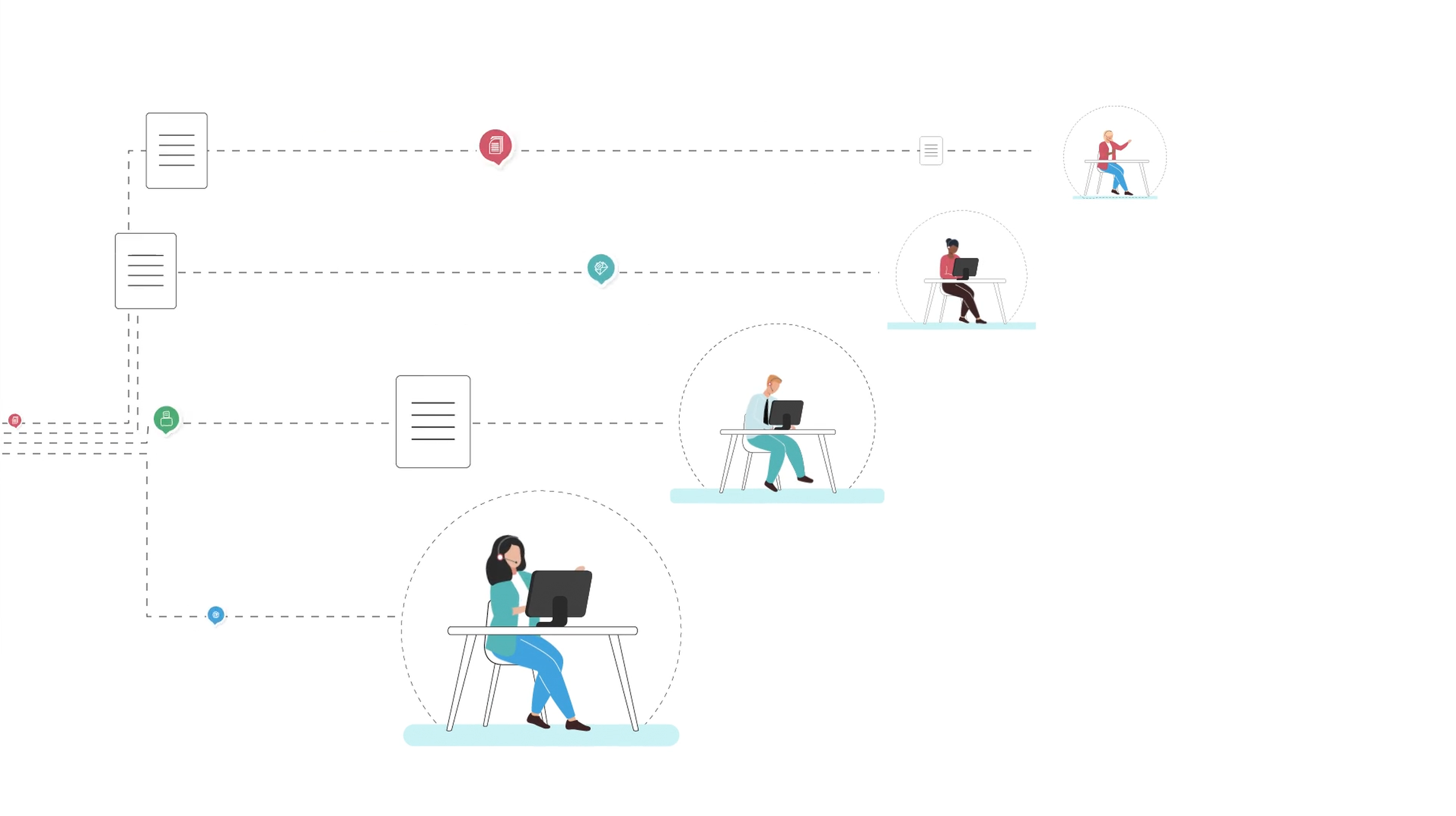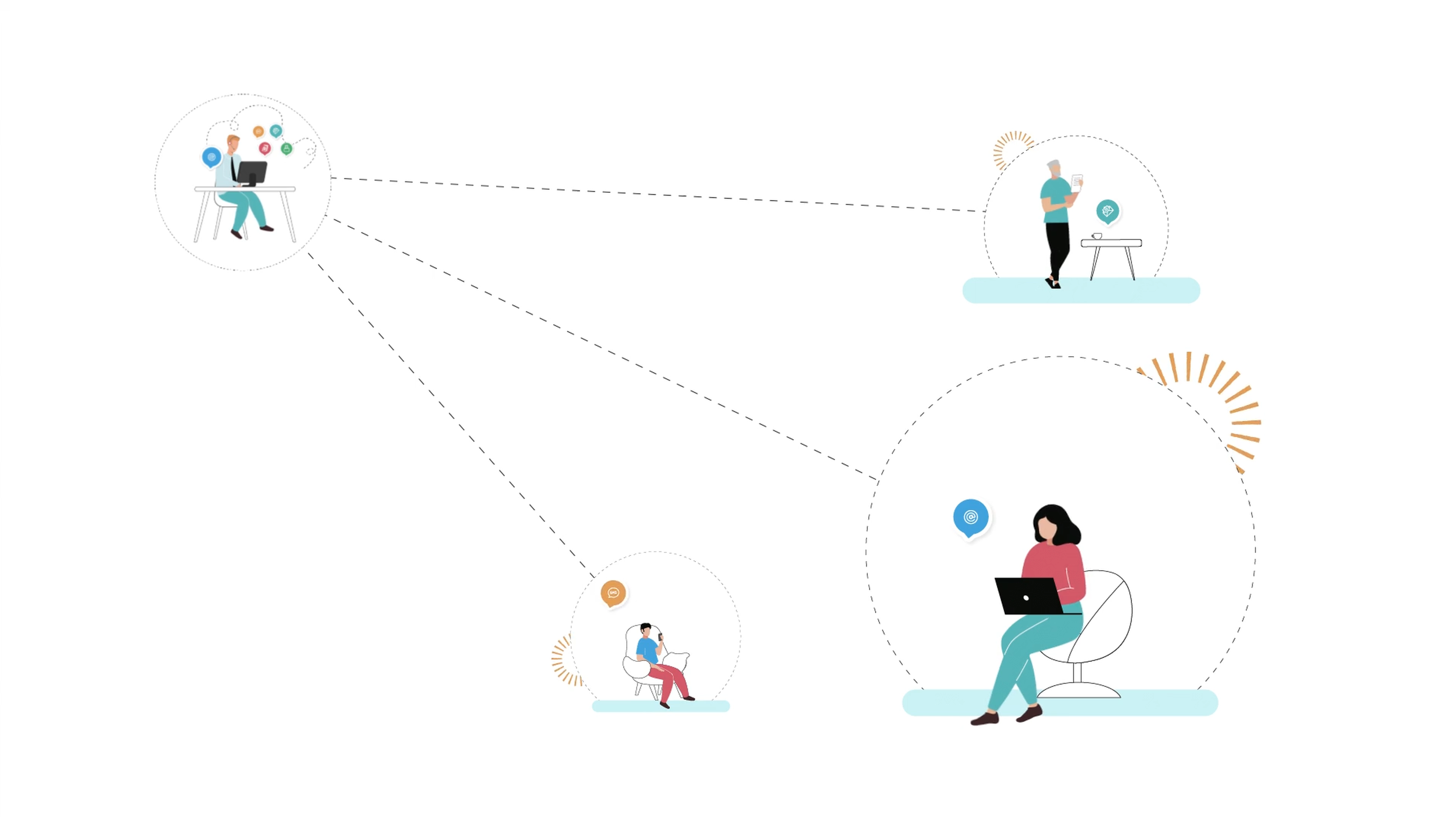 Used animated icons, characters and workflows to illustrate key pain points and product benefits
